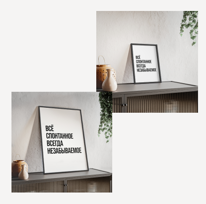 - Прочная сосновая рамка с защитным акриловым стеклом, доступна в черном и белом цветах, для естественного и элегантного вида.